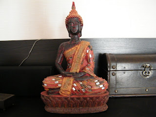 Alors nous ce matin j'ai dis "on va à la chasse au bouddha"! On a écumé plein de magasins de déco, ouf c'est la mode mais on veut pas prendre n'importe quoi,.Comme d'hab Val est complice du choix, elle aussi aime ou ne veut pas certains trucs, les mêmes que moi!;Périgrinations enthousiastes car fructueuses mais pas encore ce que l'on veut, on prend quand même une petite tête et puis idée de gènie: Val me conduit dans un coin que nous connaissons pas et là, ben là j'ai eu le coup de foudre pour le plus beau, celui dont on ne revait même pas, et voilà: regardez ils sont bien chez nous, si bien que c'est comme si ils avaient toujours étés là!